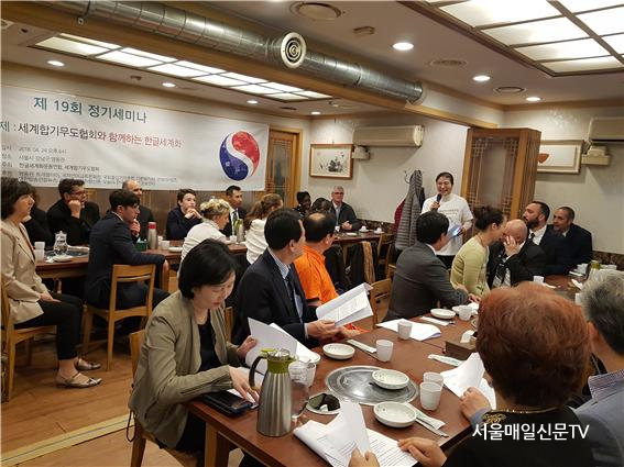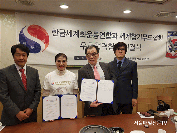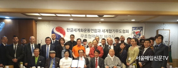 ÇÑÆí, Çѱۼ¼°èÈ­¿îµ¿¿¬ÇÕÀº 2018³â 4¿ù 24ÀÏ ¼­¿ï ¼¼°èÇѽĺ»ºÎ¿¡¼­ ¼¼°èÇձ⹫µµÇùȸ¿Í »óÈ£¿ìÈ£Çù·Â Çù¾à½ÄÀ» °³ÃÖÇÑ ¹Ù ÀÖ´Ù. ¿À¾ç½É ÀÌ»çÀåÀº À̰­Á¾ ºÎȸÀåÀÌ À¯·´ 20¿© °³±¹ÀÇ °üÀåµé°ú ÇÔ²² Çձ⹫µµ¸¦ º¸±ÞÇϰí ÀÖÀ½À» °­Á¶Çϸç, ÇѱÛÀÌ ±× ¹ßÀüÀÇ ¿øµ¿·ÂÀÌ µÉ °ÍÀ̶ó°í ¹àÇû´Ù.