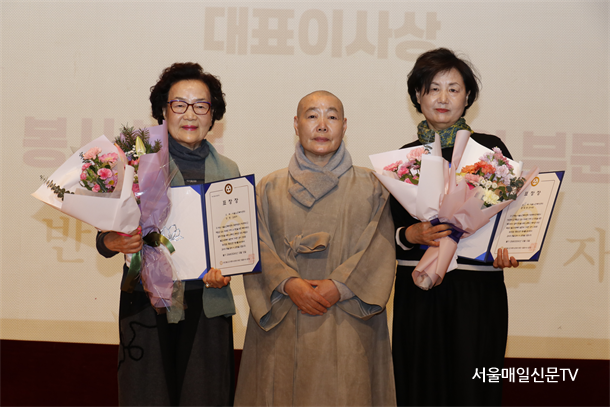 1ºÎ ½Ã»ó½Ä¿¡¼´Â ´ëÇѺұ³Á¶°èÁ¾»çȸº¹ÁöÀç´Ü ´ëÇ¥ÀÌ»ç»ó ºÀ»çºÎ¹®¿¡ ¹Ý¾ßȸ°¡, ÈÄ¿øºÎ¹®À¸·Î´Â ±èÈ¿ÀÚ°¡ ¼ö»óÇß´Ù. Á¶°è»ç ÁÖÁö½º´Ô»óÀº ºÀ»çºÎ¹®À¸·Î ±è¿µ¼÷, ¡°Ë´Ù¸®ºÀ»ç´ÜÀÌ, ÈÄ¿øºÎ¹®À¸·Î ¸ñ¿ìÀç, ÇÔ¼Òȸ°¡ °¢°¢ ¼ö»óÇß´Ù. Á¾·Î±¸ ±¹È¸ÀÇ¿ø»ó ºÀ»çºÎ¹®¿¡´Â ±¹Á¦¶óÀ̿½ºÇùȸ 354-A Áö±¸°¡, ÈÄ¿øºÎ¹®À¸·Î ½ÅÇѶóÀÌÇÁ°¡ ¼ö»óÇß´Ù. ¼¿ïƯº°½ÃÀÇȸ ÀÇÀå»ó ºÀ»çºÎ¹®¿¡´Â Çູ¹®ÈÆ÷·³ÀÌ, ÈÄ¿øºÎ¹®¿¡´Â ºÀÀº»ç°¡ ¼ö»óÇßÀ¸¸ç ÁÁÀºÀכּó ºÀ»çºÎ¹®¿¡´Â ÇÏ¿µ¼ø, ÈÄ¿ø ºÎ¹®¿¡´Â ¾ç°øÁøÀÌ ¼ö»óÇß´Ù. ³ëÀκ¹Áö°øÇå»ó ºÀ»çºÎ¹®¿¡´Â ´ëÇѸíÀÎȸ°¡ ÈÄ¿øºÎ¹®¿¡´Â ¼º½Å¾çȸ°¡ ¼ö»ó¿¡ À̸§À» ¿Ã¸®¸ç ÃÑ 14°³ ºÎ¹®ÀÇ ¼ö»óÀÌ ÁøÇàµÇ¾ú´Ù.