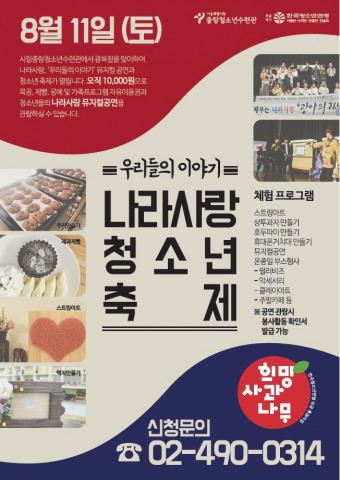 ½Ã¸³Áß¶ûû¼Ò³â¼ö·Ã°ü(¿î¿µ¹ýÀÎ Çѱ¹Ã»¼Ò³â¿¬¸Í)ÀÌ ±¤º¹ÀýÀ» ¸Â¾Æ ´Ù¾çÇÑ Ã¼Çè°ú û¼Ò³â âÀÛ¹ÂÁöÄà °ø¿¬À» Áñ±æ ¼ö ÀÖ´Â ¡®³ª¶ó»ç¶û û¼Ò³â ÃàÁ¦¡¯¸¦ ¿À´Â 8¿ù 11ÀÏ ÁøÇàÇÑ´Ù.